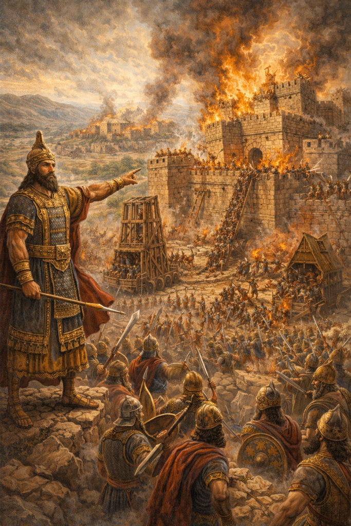 Joram de Juda, fils de Josaphat, devint roi de Juda au cours de la 5ème année du règne de Joram d’Israël, fils d’Achab. Sa femme était une fille d’Achab et ce mariage était politiquement stratégique ; il fit ce qui est mal aux yeux de l’Éternel car il introduisit l’influence religieuse de la maison d’Achab dans Juda et favorisa les pratiques idolâtres. Pendant son règne, plusieurs peuples se révoltèrent contre Juda : Édom, Libna. Ces révoltes furent considérées comme un signe d’affaiblissement du royaume. Élie écrivit une lettre dans laquelle il condamnait Joram pour plusieurs raisons : il ne suivait l’exemple de son père Josaphat et il entraînait Juda dans l’idolâtrie ; il assassina ses propres frères. La prophétie annonça alors des catastrophes nationales et une maladie terrible. Peu après, Juda fut envahi par les philistins et des peuples arabes. Ils capturèrent les femmes du roi et ses fils, sauf Achazia. Joram fut ensuite frappé d’une maladie intestinale très douloureuse qui dura deux ans et dont il mourut dans d’atroces souffrances. Joram ne fut pas pleuré par son peuple.